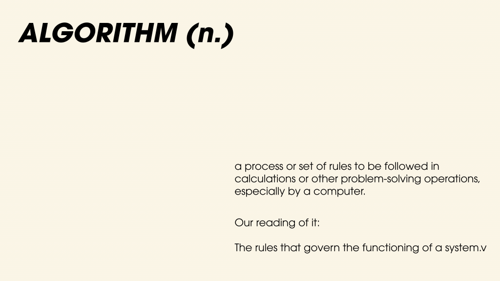 We realized that we were discussing an institutional algorithm, but wanted to represent it in an artistic effect.