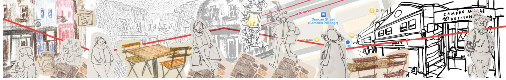 Through this exercise, I was able to see Camden Passage allowing for both performance and refuge. Camden Passage offers an anachronistic urban fantasy – fueled by consumption and a bit of escapism.